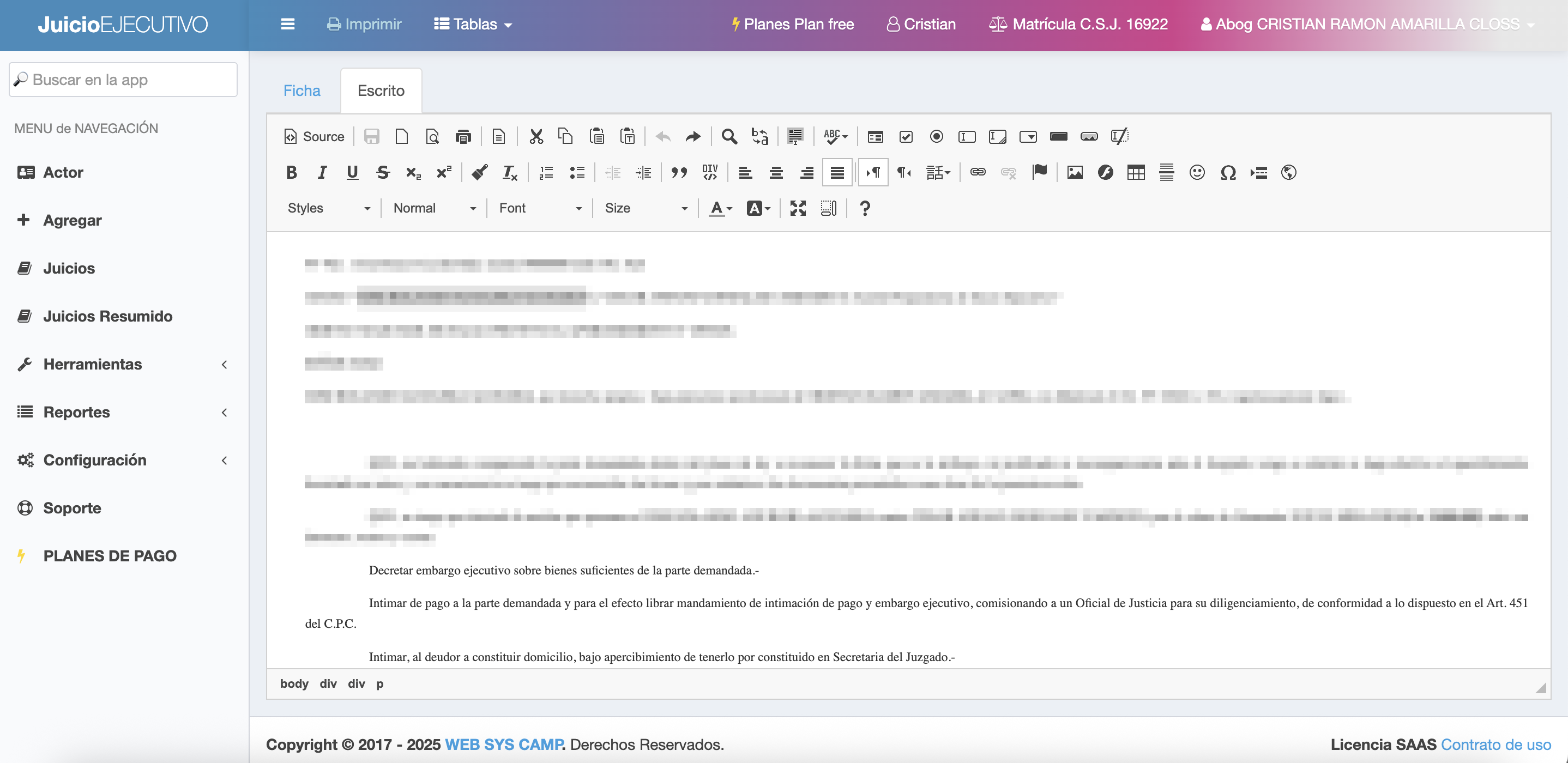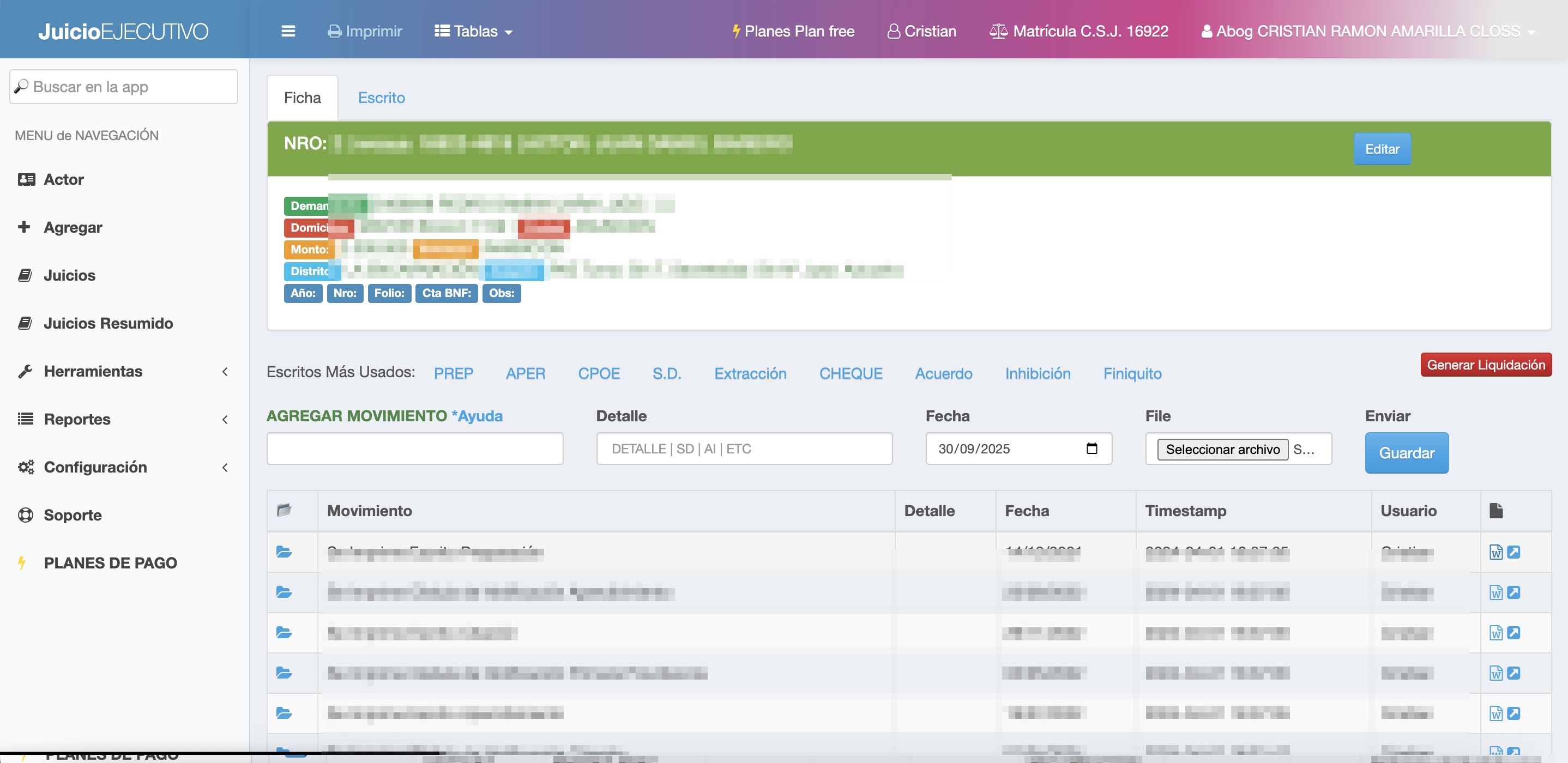 Con este sistema podrás optimizar el trabajo jurídico, ahorrar tiempo en tareas repetitivas y mantener un control estratégico de tus juicios ejecutivos.