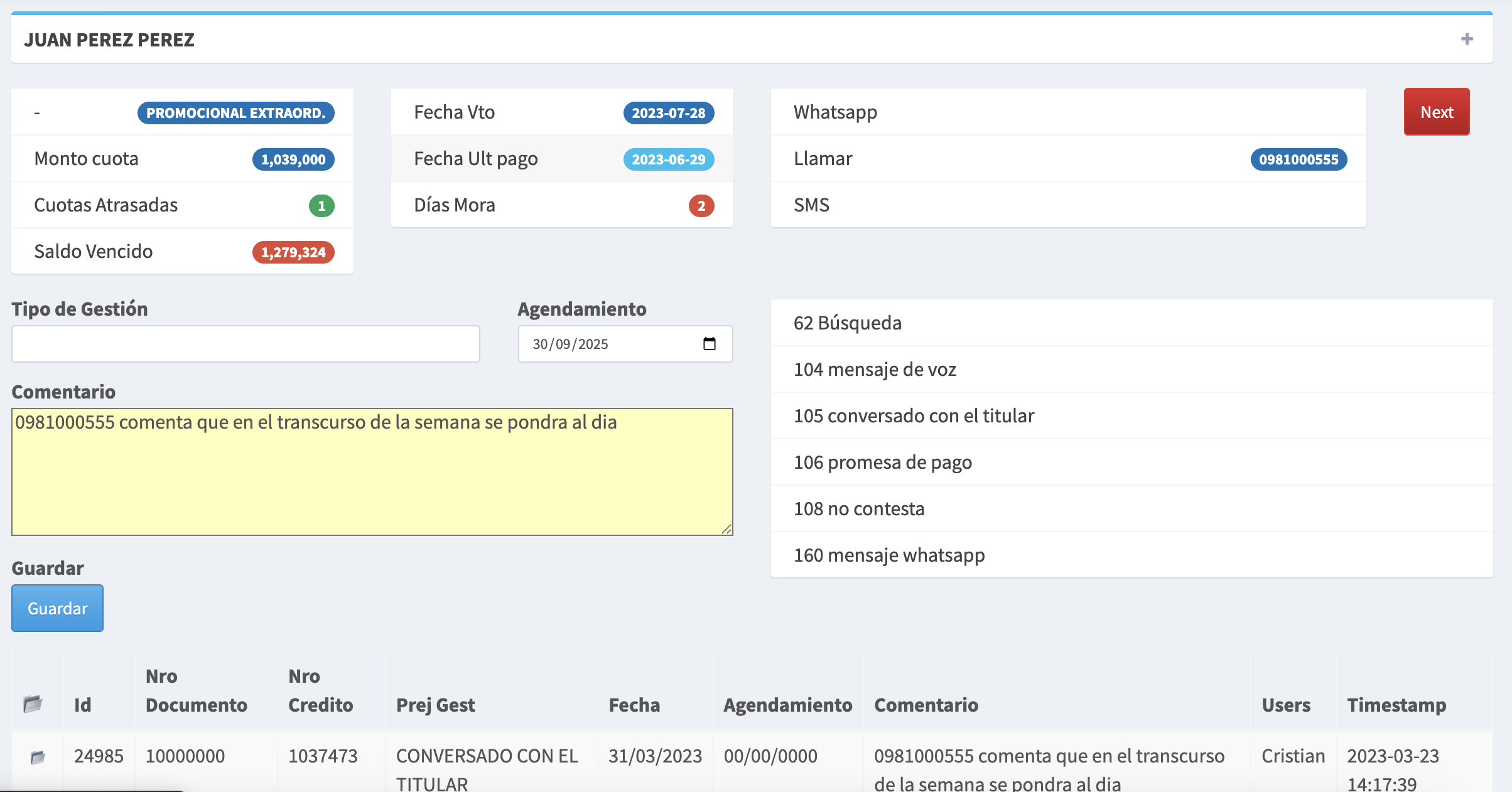 Con nuestro sistema podrás llevar un control completo de tu cartera, mejorar la productividad de tus agentes y asegurar un seguimiento eficiente de cada cliente.